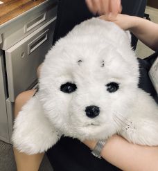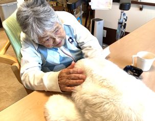 少し前の事ですが、あざらしロボットの「パロちゃん」が遊びに来てくれました 人と動物との触れ合いにより、アニマルセラピー効果が期待できるロボットとのこと 呼びかけにかわいい鳴き声で反応し、毛並みもふさふさで触り心地がとても良いです 「可愛いね〜」「パロちゃん〜」と皆様の笑顔があふれていました 私たち職員も、見た目やしぐさに癒されました |